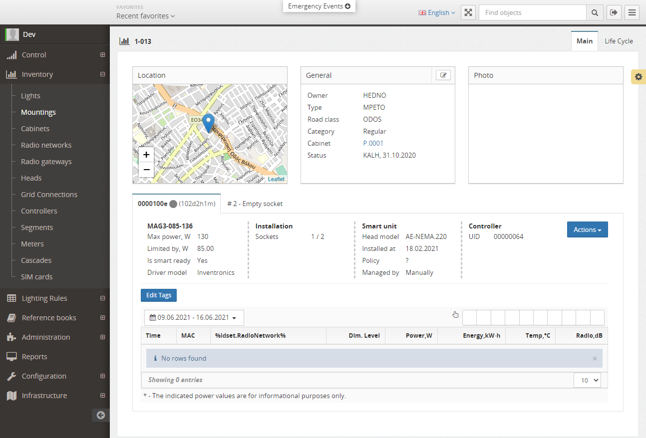 The main menu of the interface is located on the left side of the screen and serves to select the functional sections of the system, such as “Technical accounting”, “Management”, “Administration”, etc. The selected item in the menu is always highlighted in a different color. Before the name of the section, there is an icon designating it (an icon, a symbolic graphic image).