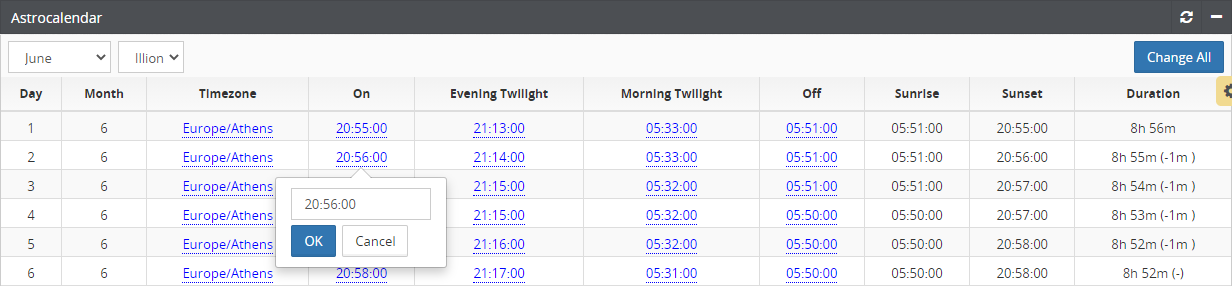 The text underlined with a blue dashed line can be switched to editing mode with a mouse click. In this case, a micro-window with an input field or a drop-down list and confirmation / cancellation buttons will appear on the screen: