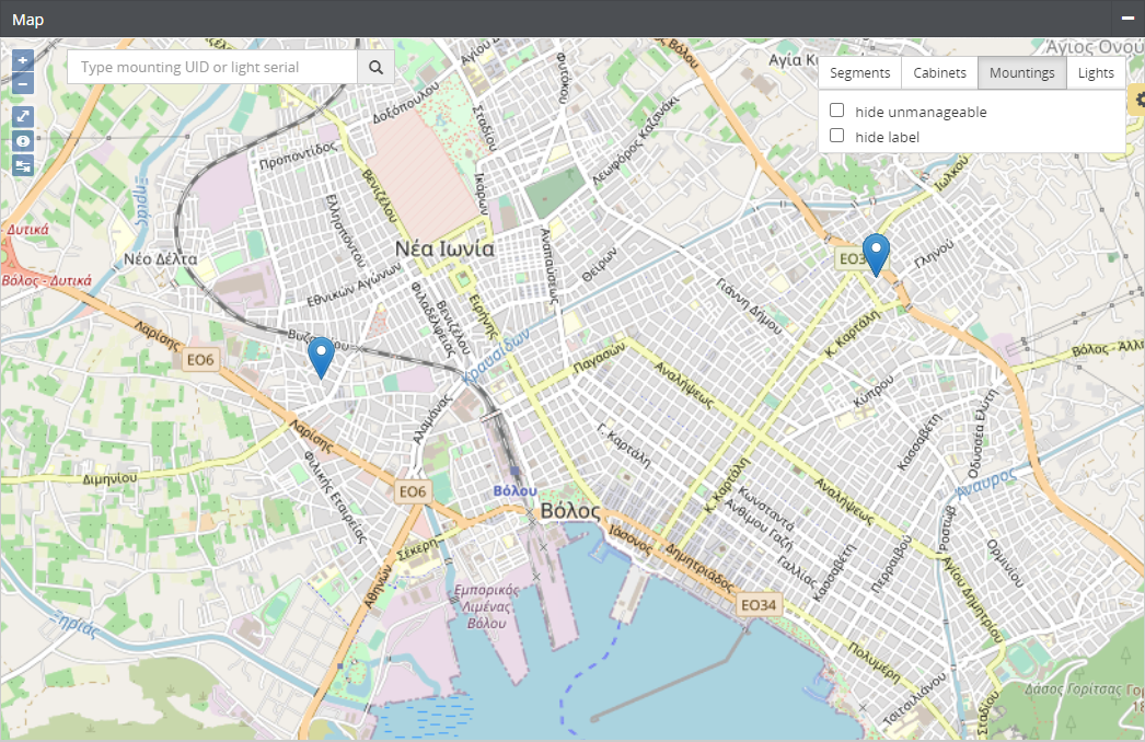 - Hiding the controls for the contents of the map (objects) is performed by pressing the button