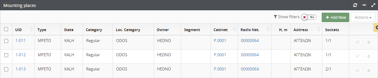 In the given example, the transition to the mounting page will be performed by clicking on the selected Code of the mounting, the transition to the cabinet page will be performed by clicking on the selected Cabinet
