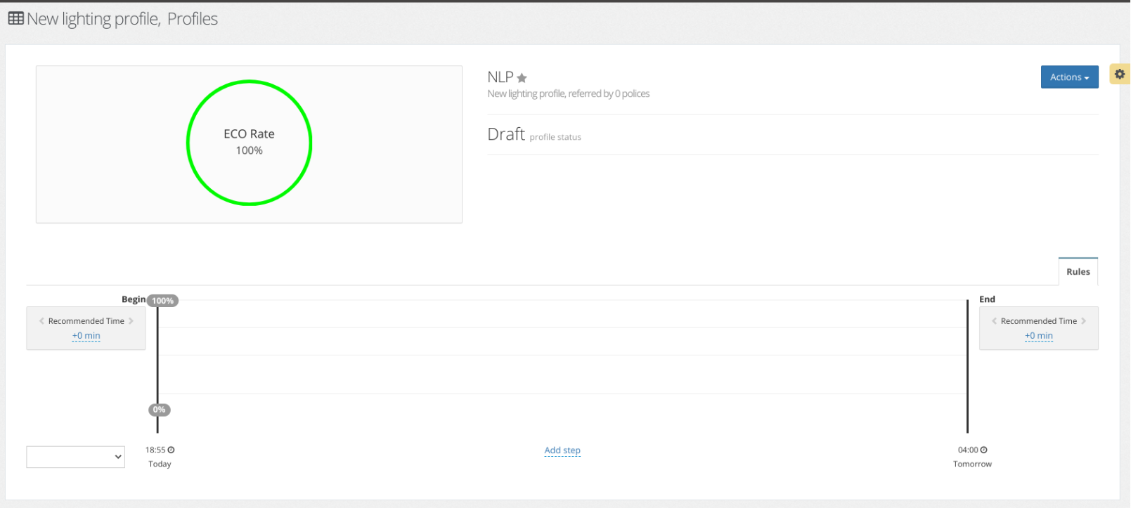 - Click Save. System will forward to the page with empty lighting profile.