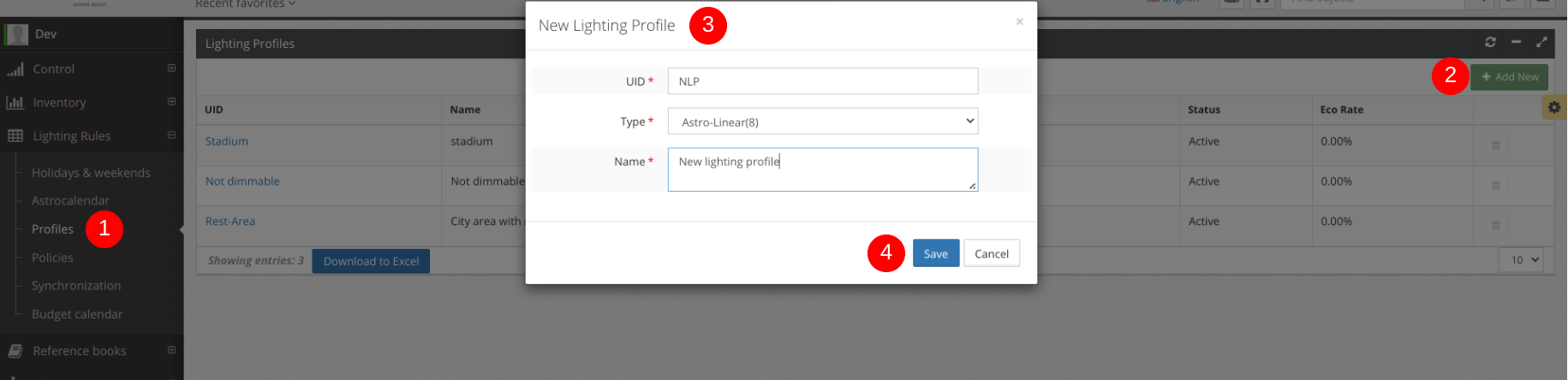 - Go to *Lighting Rules->Profiles.