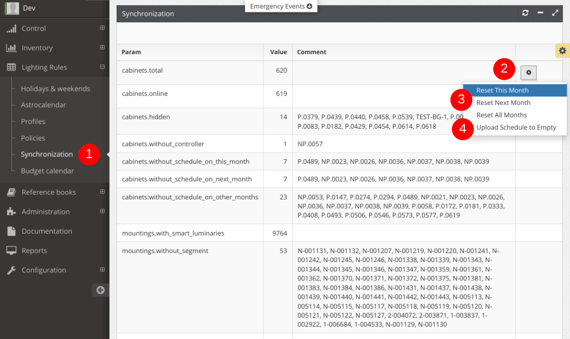 - Select menu item Reset This Month, Reset Next Month or Reset All Months, to clean link between controller and schedule in the database for this, next or all months. Reset operation changes data only in the System database. A schedule uploaded inside controller before, remains without changes.