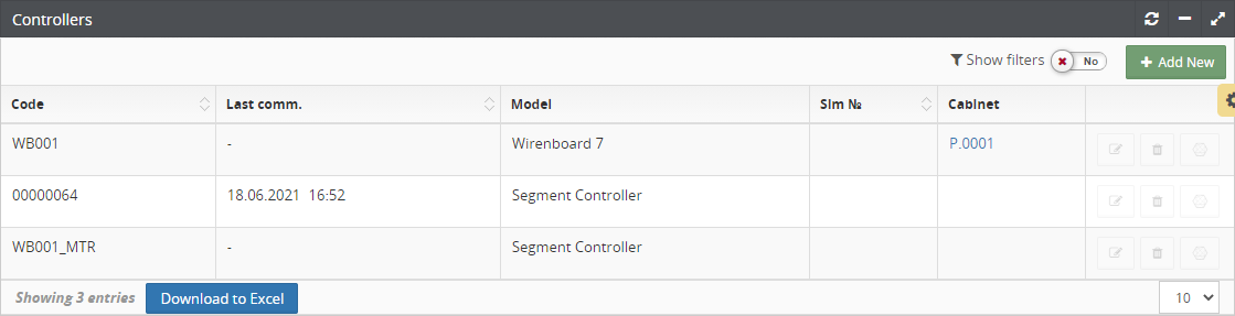 - Binding of the controller to the cabinet is performed by pressing the button Cabinet;