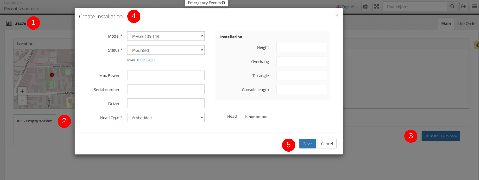 | Initial state | The status assigned to the luminaire upon creation. |
