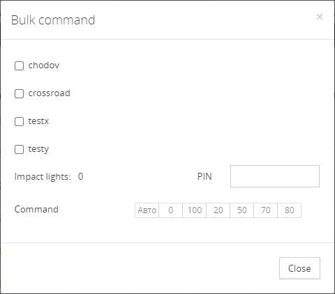 When you click on the dimming level button, commands for setting the current power level are sent to the head of the luminaires that satisfy the selected labels. The modal window is closed.