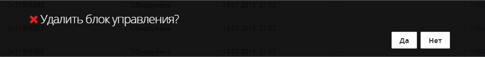 Для подтверждения критических операций используется модальное окно черного цвета, в котором содержится уточняющий вопрос и кнопки подтверждения/отмены операции:
