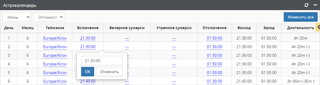 • Кнопка Отменить предназначена для отмены изменений, сделанных в окне. При нажатии компонент переходит в свернутый режим. Содержимое интервала не обновляется.
