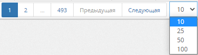 • Выпадающий список с количеством одновременных отображаемых записей на странице.