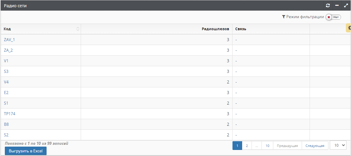 | Радиошлюзов | Количество действующих радиошлюзов. |